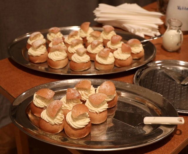 Vi bjuder på kaffe och goda semlor från Matboa.
